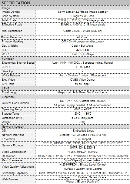 ISI240V10550 2Megapixel IP Camera